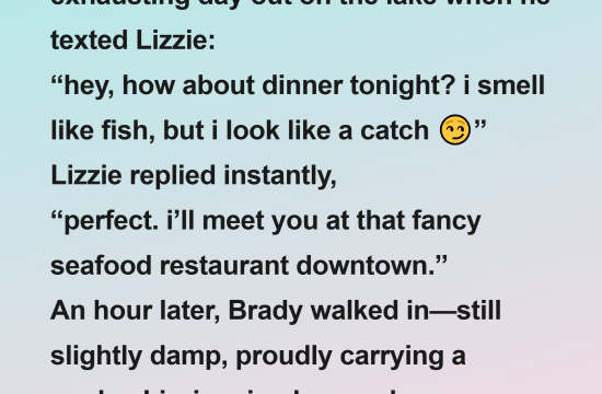 Brady had just wrapped up a long, exhausting day out on the lake when he texted Lizzie:“hey, how about dinner tonight? i smell like fish, but i look like a catch 😏” Lizzie replied instantly,“perfect.…