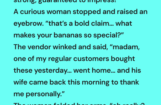 A street vendor was shouting at the top of his lungs,“fresh bananas! sweet, strong, guaranteed to impress!” A curious woman stopped and raised an eyebrow.“that’s a bold claim… what makes your bananas so special?” The…