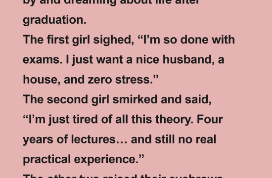 Three college seniors in New York were lounging on campus grass, watching couples walk by and dreaming about life after graduation. The first girl sighed, “I’m so done with exams. I just want a nice…