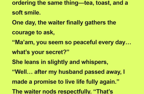A well-dressed widow in her late 50s walks into a quiet café every morning, always ordering the same thing—tea, toast, and a soft smile. One day, the waiter finally gathers the courage to ask,“Ma’am, you…