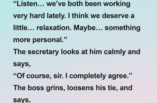 A boss calls his secretary into the office late one evening and says,“Listen… we’ve both been working very hard lately. I think we deserve a little… relaxation. Maybe… something more personal.” The secretary looks at…