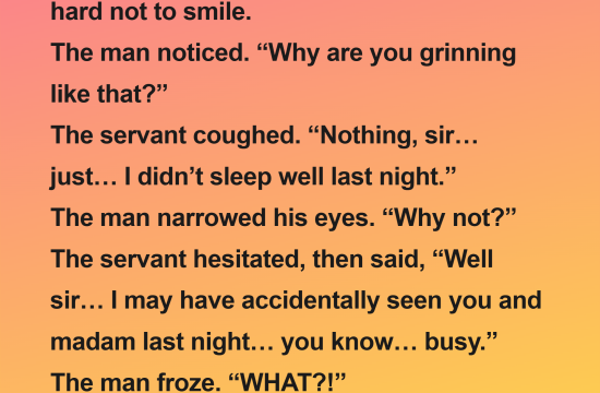 A wealthy man was having breakfast when his home servant walked in, trying very hard not to smile. The man noticed. “Why are you grinning like that?” The servant coughed. “Nothing, sir… just… I didn’t…
