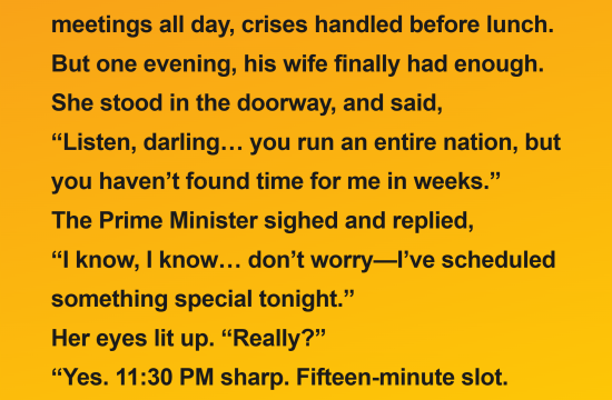The Prime Minister of a busy European country was known for his discipline—up at 5 AM, meetings all day, crises handled before lunch. But one evening, his wife finally had enough. She stood in the…