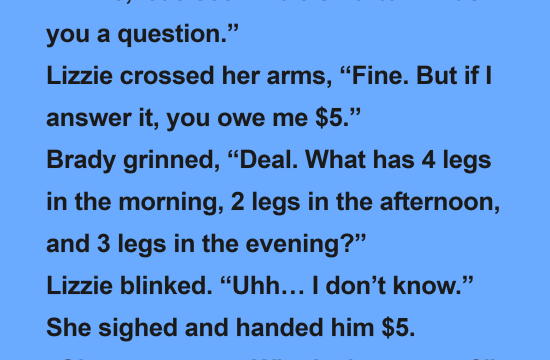 Brady and Lizzie were the most mischievous kids in the neighborhood—always plotting, always competing. One day, Brady whispered,“Lizzie, let’s see who’s smarter. I’ll ask you a question.” Lizzie crossed her arms, “Fine. But if I…