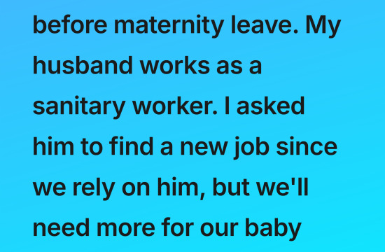 I have two stepchildren and am pregnant, still working before maternity leave. My husband works as a sanitary worker. I asked him to find a new job since we rely on him, but we’ll need…