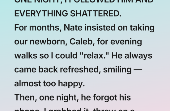 Motherhood had left me exhausted, and my husband seemed to understand. Every evening, he took our baby for a walk so I could relax, and it felt like a sweet gesture. At first, I even…