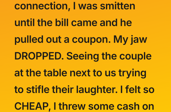 Today’s letter from Dolly, a 27-year-old reader, tells the story of how a single coupon transformed a promising first date into an unexpected clash of values. Her experience highlights the complex relationship between romance and…