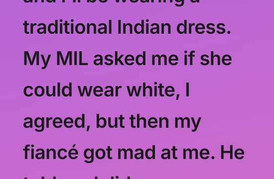 I’m getting married soon, and I’ll be wearing a traditional Indian dress. My MIL asked me if she could wear white, I agreed, but then my fiancé got mad at me. He told me I…