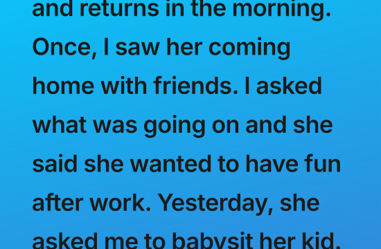 She dresses up, leaves late and returns in the morning. Once, I saw her coming home with friends. I asked what was going on and she said she wanted to have fun after work. Yesterday,…