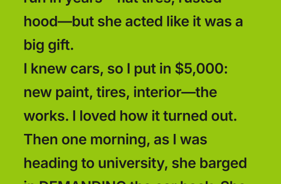 My sister sold me her old, beat-up car for a symbolic price. The thing hadn’t run in years—flat tires collapsed like pancakes, a hood eaten through with rust, and an interior that smelled like dust,…