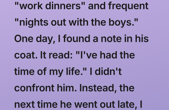 After I got pregnant, my husband changed—late-night “work dinners,” frequent “nights out with the boys.” His excuses kept piling up, and so did my worries. Every time his phone buzzed, his eyes would flicker toward…