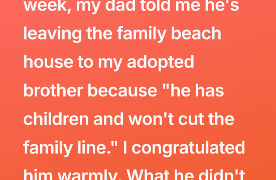 I’m child-free at 28. Last week, my dad told me he’s leaving the family beach house to my adopted brother because “he has children and won’t cut the family line.” I congratulated him warmly. I…
