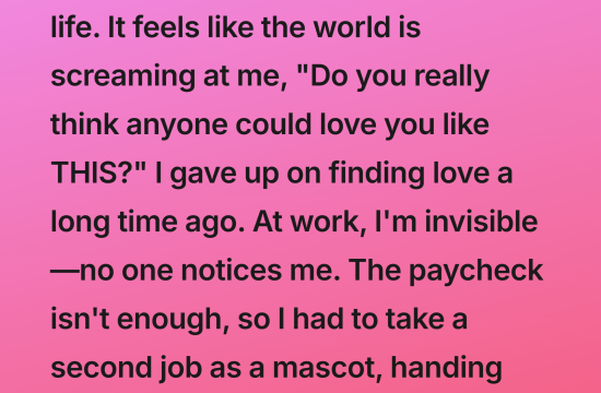 Every Saturday, I sweated in a ridiculous bear suit, handing out flyers until my boss unknowingly started flirting with me. He had no idea who I was… and I was too scared to tell him…