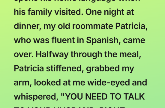 When my Spanish husband spoke to his parents, I never questioned the language barrier — until my friend, fluent in Spanish, joined us for dinner. Halfway through the meal, she grabbed my arm, eyes wide…