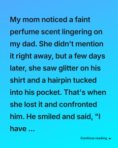 My mom noticed a faint perfume scent lingering on my dad. She didn’t mention it right away, but a few days later, she saw glitter on his shirt and a hairpin tucked into his pocket.…