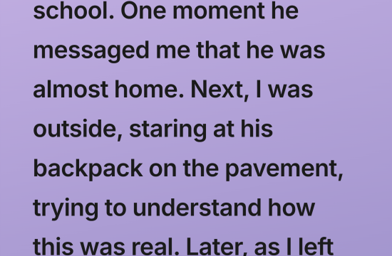 My 8 y.o. son was hit by a car walking home from school. One moment he messaged me that he was almost home. He had just gotten his first hand-me-down phone, and he loved sending…