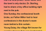 One Sunday, the confessional booth broke, so Father Miller had to hear confessions in the doctor’s exam room behind a thin curtain.