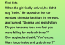 When the girl finally arrived, he didn’t say “hello.” He tapped on her car window, shined a flashlight in her eyes, and barked, “License and registration! Do you have any idea how fast you were falling for me back there?”