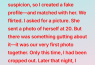 She didn’t know it was me. She opened up easily. Too easily. She laughed at my jokes. She flirted. She stayed up late replying.