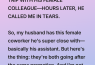 “I… it’s okay,” he said. “What’s wrong, honey?” I asked. “Tell me.