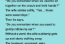 “Do you remember when we used to sit together on the couch and hold hands?”