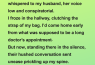“What?” Jeff whispered, leaning closer as though he hadn’t heard me right.
