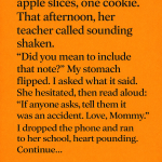 Mom stood there, slicing carrots. Her movements were robotic. Her shoulders, rigid.