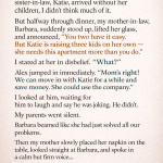 “You embarrassed me,” Jake hissed under his breath. “Now everyone thinks I don’t take care of you.”
