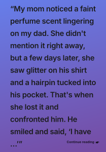 Lately, he’d been “working late” more often. He’d go on business trips, sometimes staying overnight at the office, and when I asked him about it, he’d brush it off.