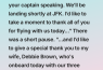 “Ladies and gentlemen,” came the voice from the cockpit, “this is your captain speaking. We’ll be landing shortly at JFK. I’d like to take a moment to thank all of you for flying with us today…”