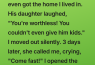 The words hit harder than any physical blow. They didn’t just hurt—they hollowed me out. In that moment, all the years I had spent loving her father, caring for him, building a life with him, were reduced to one cruel sentence in her eyes. I had never felt so small, so unwanted, or so utterly disposable.