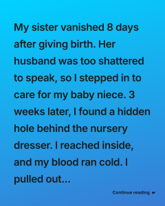 She continued as if I hadn’t spoken. “Then, just before the birthday celebration, she discovered something wonderful. She was pregnant. For a brief moment, everything was perfect. A baby, a reconciled friendship, a complete family… Just perfect.”