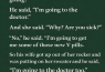 She met his eyes with a perfectly straight face and said, “To the doctor too.”