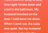 My husband knocked on the door. I said leave me alone. I heard him walk away. Twenty minutes later I came out. The baby was quiet. The house was quiet. His keys were gone. I checked the driveway from the window. His car was gone.