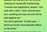“License and registration, please,” she said with a wink. “And I should warn you, anything you say can and will be held against me.”