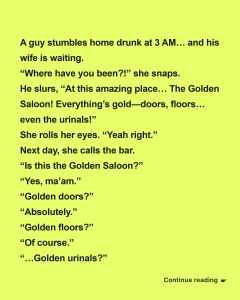 “I told my father I’d marry the first man I saw. That’s you,” she said. “And thank heavens, you’re not homeless.”