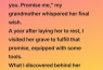 “One year after I’m gone, clean my picture on my gravestone. Just you. Promise me,” my grandmother whispered her final wish.