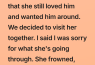 She called him and said that she still loved him and wanted him around. We decided to visit her together. I said I was sorry for what she’s going through. She frowned, looked at me, and said, “You? Sorry for me? That’s rich.”
