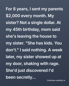 I sat there speechless, the $50 card trembling in my hand. I thought of all the times I’d watched her clip coupons and scold me for wasting food, never realizing that her thrift wasn’t about greed — it was about saving enough to give more.