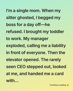At first, I brushed it off as coincidence. But then I really looked at him — the slope of his nose, the shape of his chin. Familiar in a way that unsettled me. But I didn’t have kids. I barely had family left at all.