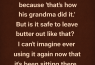 On her second morning, she walked into the kitchen, saw the half-empty butter dish, and chuckled. “Oh, honey, you’re refrigerating butter? That ruins the flavor, you know.”