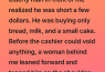 The cashier nodded gently and reached for the screen, her expression soft but practiced—she had likely seen moments like this before. The cursor blinked as she prepared to remove the item, and for a split second, it felt like the entire line held its breath. But before she could void anything, the woman behind me suddenly leaned forward, her movement quick, almost urgent.