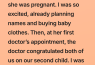 The doctor walked in, flipped through the chart with a casual familiarity, and then smiled warmly. “Congratulations to both of you on your second child.”