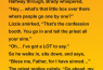 Lizzie smirked, âThatâs the confession booth. You go in and tell the priest all your sins.â