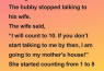 “I will count to 10. If you don’t start talking to me by then, I am going to my mother’s house!”