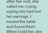 “I… I think I lost my earrings,” she said. “They mean a lot to me. Have you seen them?”