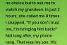 But last Tuesday, she had no choice. Emergency at work. She needed me to watch Benny for just two hours.