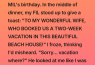 “To my wonderful wife, who booked us a two-week vacation in this beautiful beach house!”