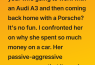 Nico had left her after a year. Said he wasn’t ready for “commitment.” She tried to keep the Porsche but couldn’t make payments. Turns out, she’d taken a big chunk of her savings to buy it, and after the breakup, things got tight.