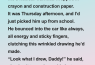 “Hey, it’s okay, bud. You were just telling me about your awesome drawing, right? I’ll pretend I don’t know, okay?”